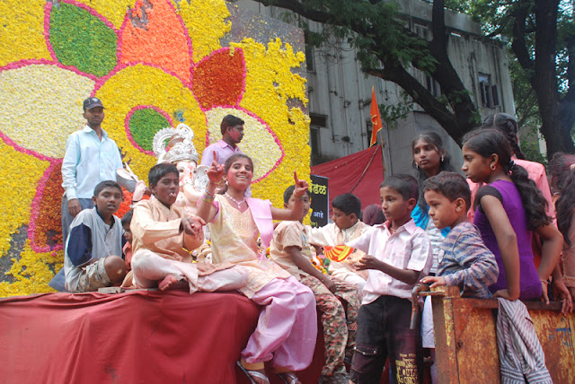 Last wek end, it was Ganesh festival and we decided to have a look. This big event is specifically popular in Maharashtra (including Pune and Mumbai). It took place all around the city for 10 days, and the last day, there are crazy parades, and people bring their Ganesh back to water (it's symbolic, you can have a look on wikipedia about that). Ganesh is a God for many things, including culture and wisdom... So he's a cool dude !
